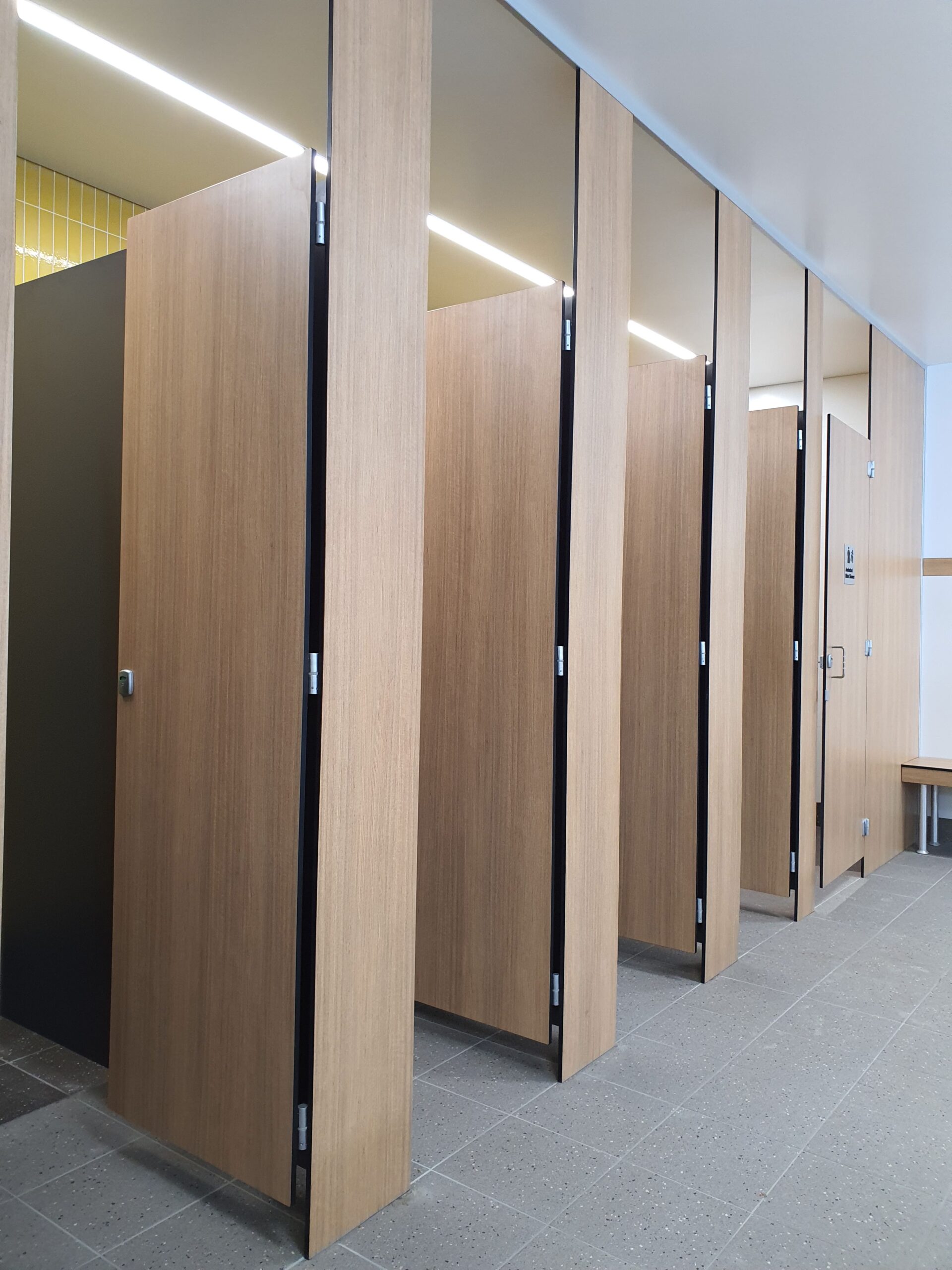 Aqualoo Custom Windsor Toilet Cubicles with Aqua Series Clear Anodised Aluminium Door Hardware